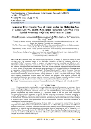 Consumer Protection For Sale Of Goods Under The Malaysian Sale Of Goo